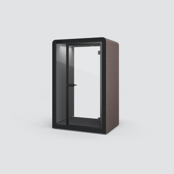 POD Silen Space 1.5, tyst rum för 1 person, Utsida tyg Quest Quartz med mörkgrå tygbeklädd insida,, belysning och ventilation