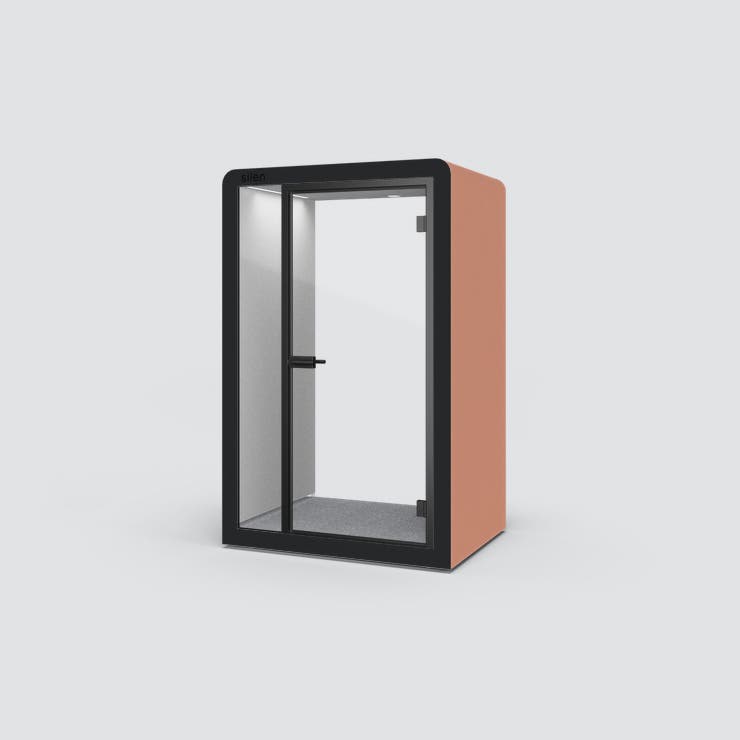 POD Silen Space 1.5, tyst rum för 1 person, Utsida tyg Quest Shrimp med ljusgrå tygbeklädd insida,, belysning och ventilation
