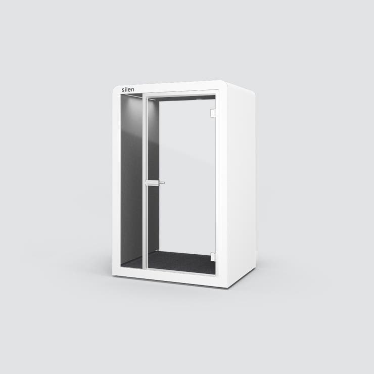 POD Silen Space 1.5, tyst rum för 1 person, Vit laminat med mörkgrå tygbeklädd insida,, belysning och ventilation