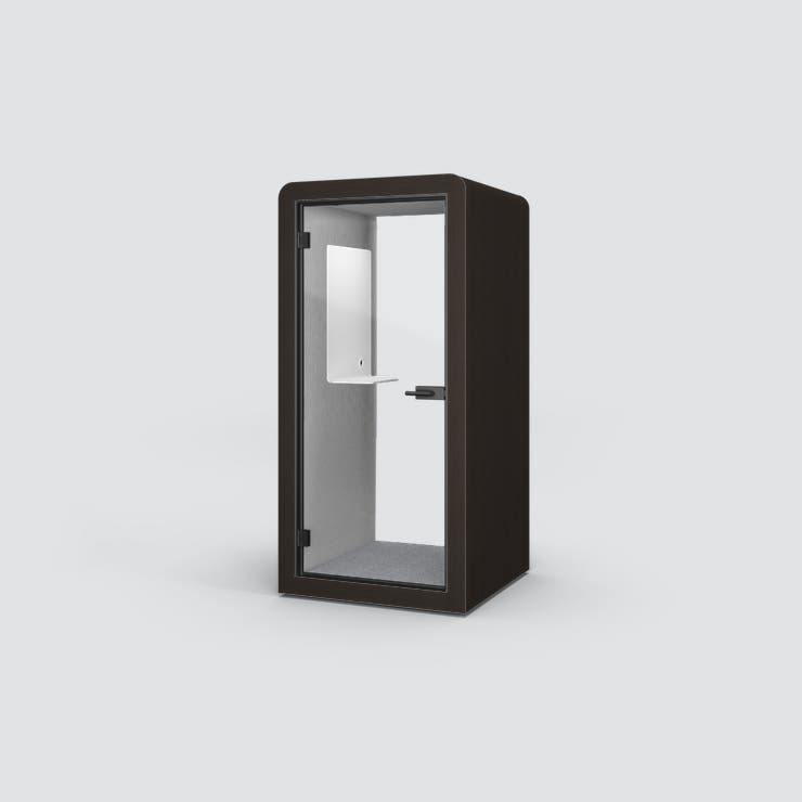 POD Silen Space 1, tyst rum för 1 person, Svart Ek fanér med ljusgrå tygbeklädd insida, inkl. bord med whiteboard, belysning och ventilation