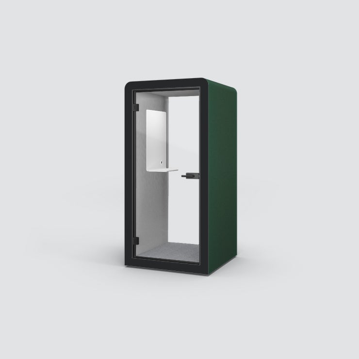 POD Silen Space 1, tyst rum för 1 person, Utsida tyg Quest Algae med ljusgrå tygbeklädd insida, inkl. bord med whiteboard, belysning och ventilation