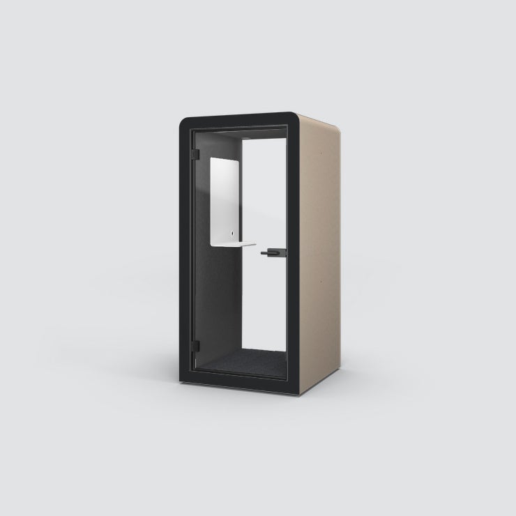 POD Silen Space 1, tyst rum för 1 person, Utsida tyg Quest Dritwood med mörkgrå tygbeklädd insida, inkl. bord med whiteboard, belysning och ventilation