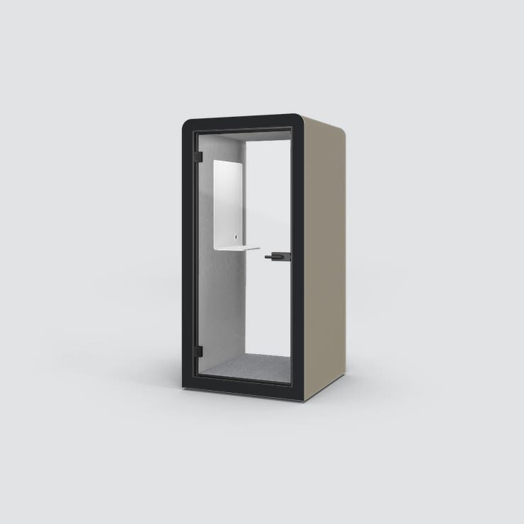 POD Silen Space 1, tyst rum för 1 person, Utsida tyg Quest Pebble med ljusgrå tygbeklädd insida, inkl. bord med whiteboard, belysning och ventilation