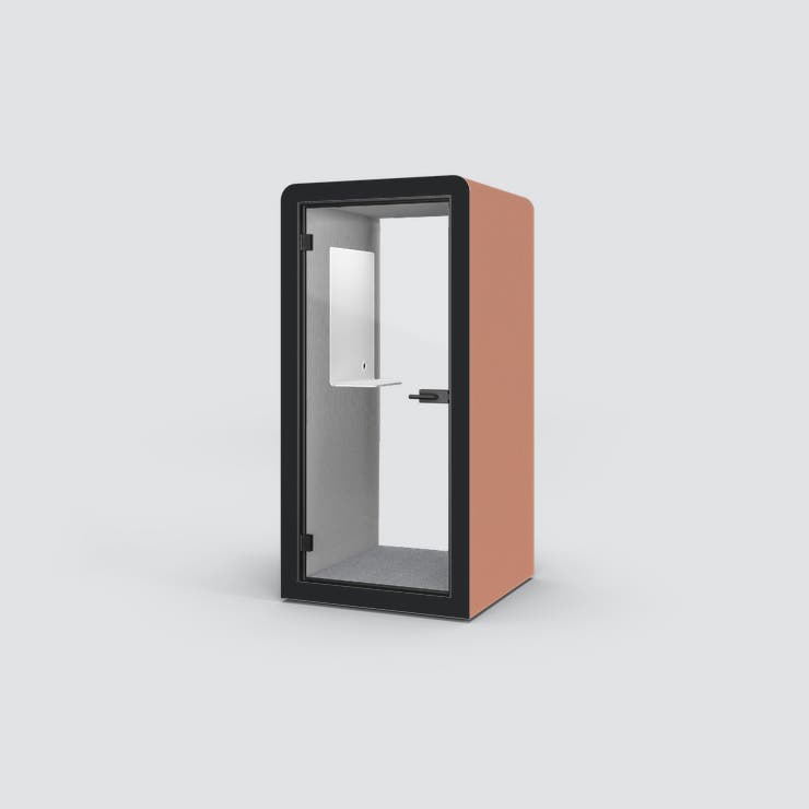 POD Silen Space 1, tyst rum för 1 person, Utsida tyg Quest Shrimp med ljusgrå tygbeklädd insida, inkl. bord med whiteboard, belysning och ventilation