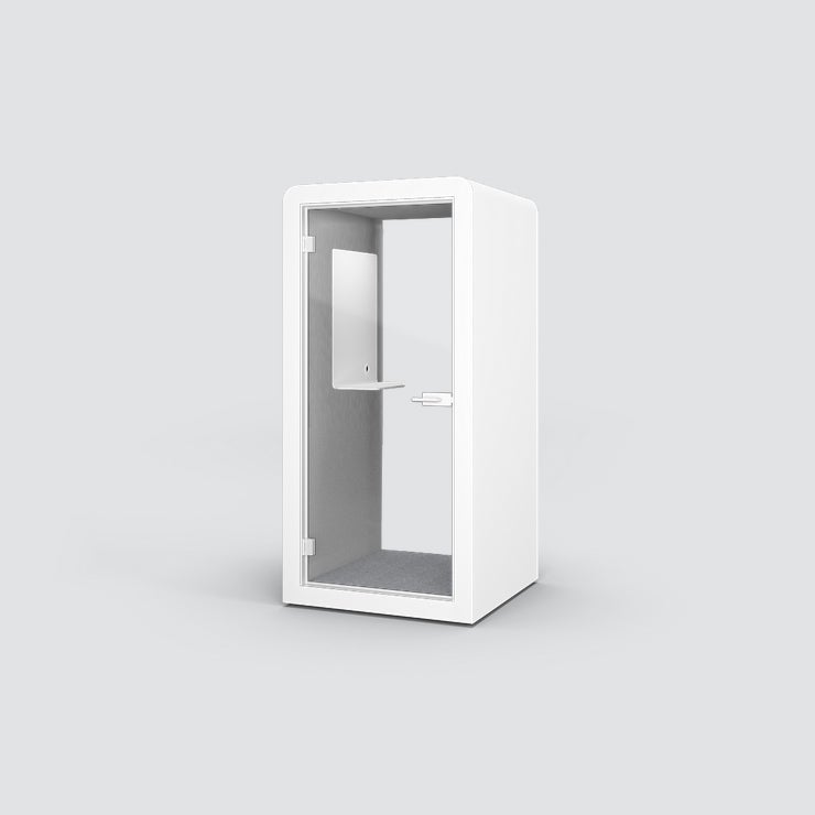 POD Silen Space 1, tyst rum för 1 person, Vit laminat med ljusgrå tygbeklädd insida, inkl. bord med whiteboard, belysning och ventilation