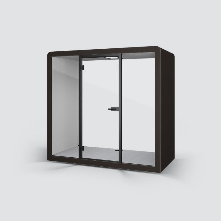 POD Silen Space 2, tyst rum för 4 personer, Svart Ek fanér med ljusgrå tygbeklädd insida,, belysning och ventilation