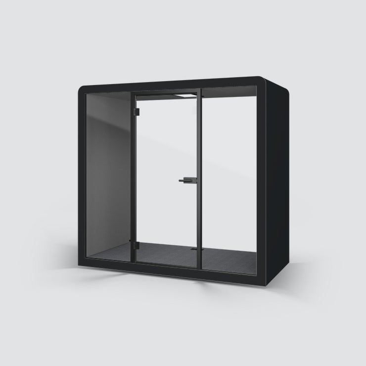 POD Silen Space 2, tyst rum för 4 personer, Svart laminat med mörkgrå tygbeklädd insida,, belysning och ventilation