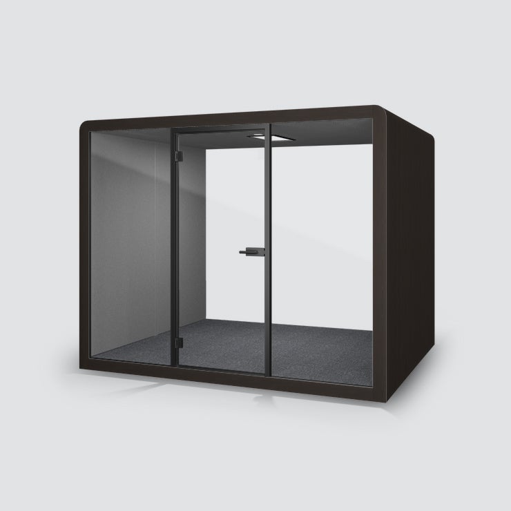 POD Silen Space Max, tyst rum för 8 personer, Svart Ek fanér med mörkgrå tygbeklädd insida,, belysning och ventilation