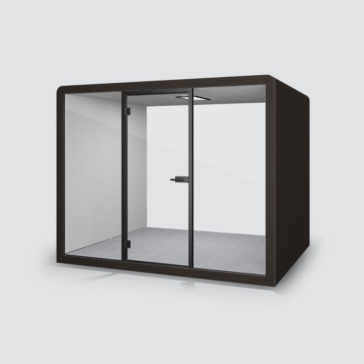 POD Silen Space Max, tyst rum för 8 personer, Svart Ek fanér med ljusgrå tygbeklädd insida,, belysning och ventilation