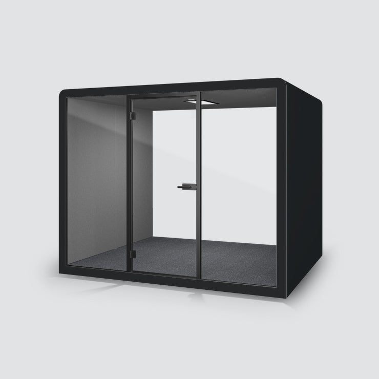 POD Silen Space Max, tyst rum för 8 personer, Svart laminat med mörkgrå tygbeklädd insida,, belysning och ventilation