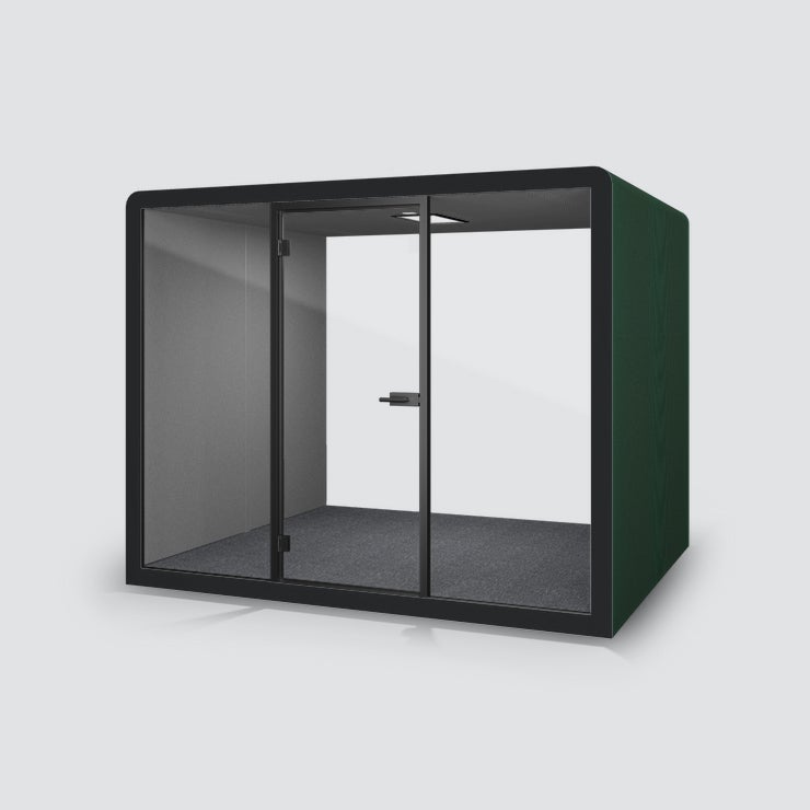 POD Silen Space Max, tyst rum för 8 personer, Utsida tyg Quest Algae med mörkgrå tygbeklädd insida,, belysning och ventilation