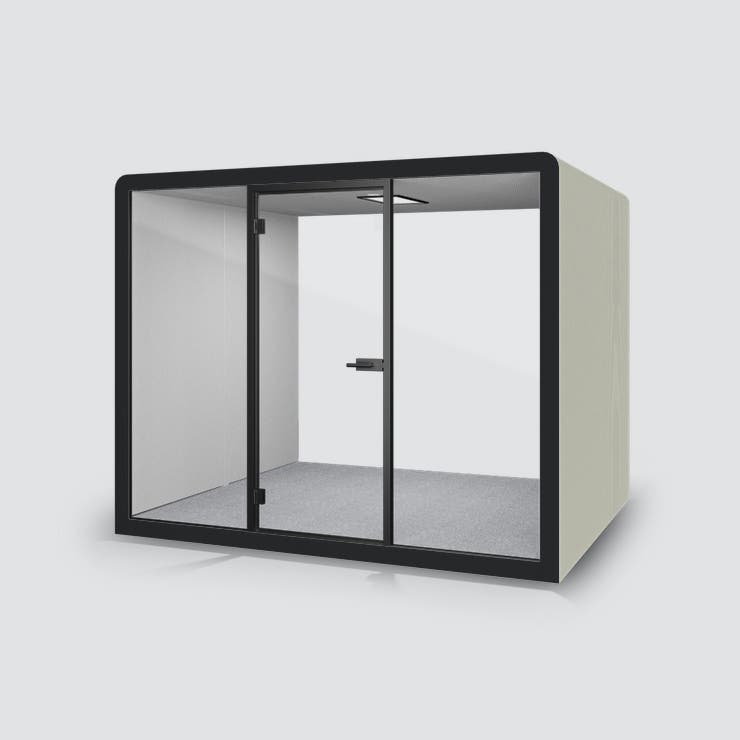 POD Silen Space Max, tyst rum för 8 personer, Utsida tyg Quest Barnacle med ljusgrå tygbeklädd insida,, belysning och ventilation