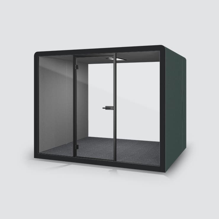 POD Silen Space Max, tyst rum för 8 personer, Utsida tyg Quest Mussel med mörkgrå tygbeklädd insida,, belysning och ventilation