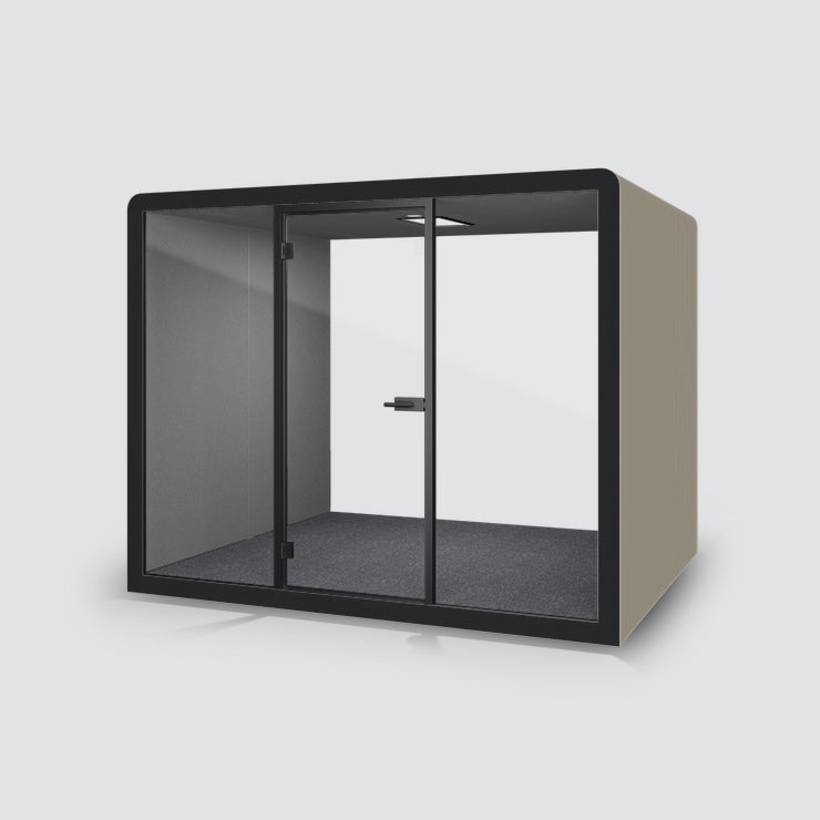 POD Silen Space Max, tyst rum för 8 personer, Utsida tyg Quest Pebble med mörkgrå tygbeklädd insida,, belysning och ventilation