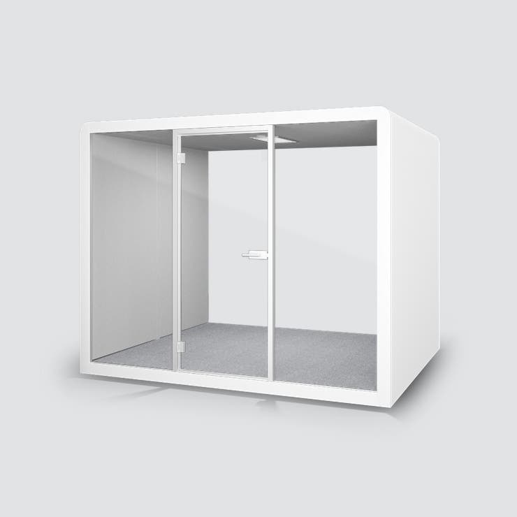 POD Silen Space Max, tyst rum för 8 personer, Vit laminat med ljusgrå tygbeklädd insida,, belysning och ventilation