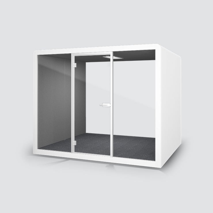 POD Silen Space Max, tyst rum för 8 personer, Vit laminat med mörkgrå tygbeklädd insida,, belysning och ventilation