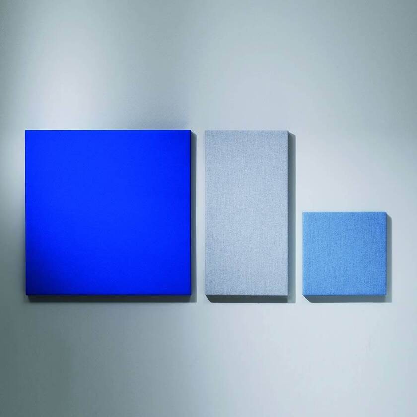 Stilren väggabsorbent med 50 mm återvunnen polyester för största möjliga ljuddämpning. Klädd i textil Fiji, valbar i 12 färger