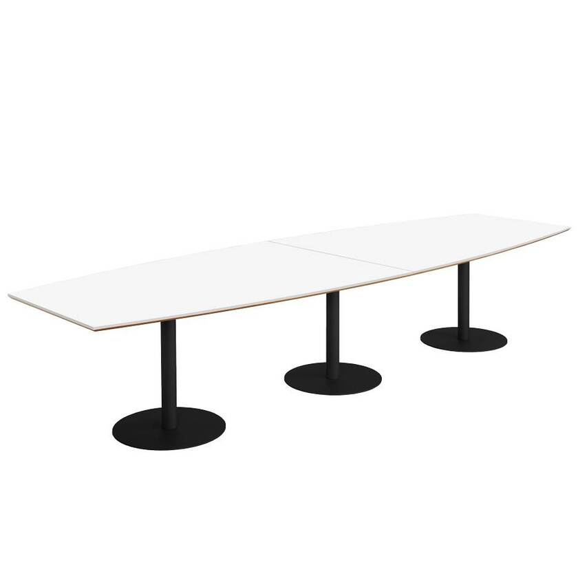 Väl tilltaget konferensbord med kraftig 26 mm bordsskiva av MDF-platta. Laminat i färgerna björk-, ek-, vit- eller grå-. Bordet står stabilt med tre st pelarstativ Verona på kraftig fot. Stativ finns i färgerna silvergrå, svart, rostfri borstad eller rostfri polerad. Fast höjd 745 mm. Bordskivan är 4200 mm lång och består av två st 2100 mm skivor, vilket ger en skarv på mitten av bordet
