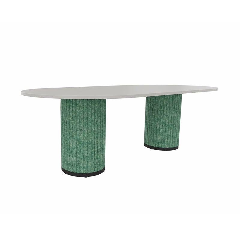 Parthos konferensbord är designade i syfte att passa för såväl mötesrum, loungerum eller som matsalsbord. De cylinderformade benen är klädda med 100% återvunnen PET-filt och har effektivt ljudabsorberande egenskaper. Den elliptiska bordsskivan i kombination med den moderna utformningen av benstativ ger Parthos en tilltalande estetik.
