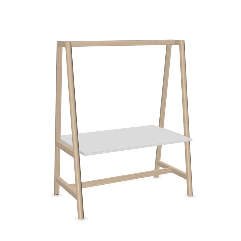 Som standard valbar med tre olika kulörer på laminat, samt två nyanser av bets på stativet i ask. Vidare valbar i tre längder samt tre fasta höjder.