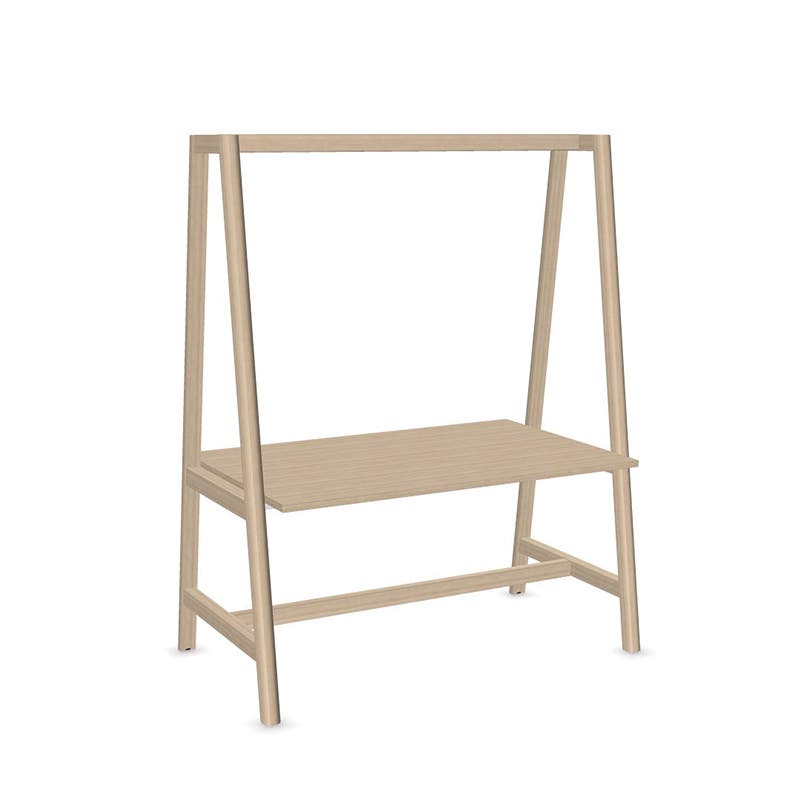Som standard valbar med tre olika kulörer på laminat, samt två nyanser av bets på stativet i ask. Vidare valbar i tre längder samt tre fasta höjder.
