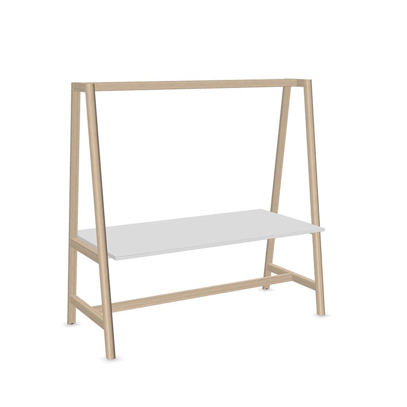 Som standard valbar med tre olika kulörer på laminat, samt två nyanser av bets på stativet i ask. Vidare valbar i tre längder samt tre fasta höjder.