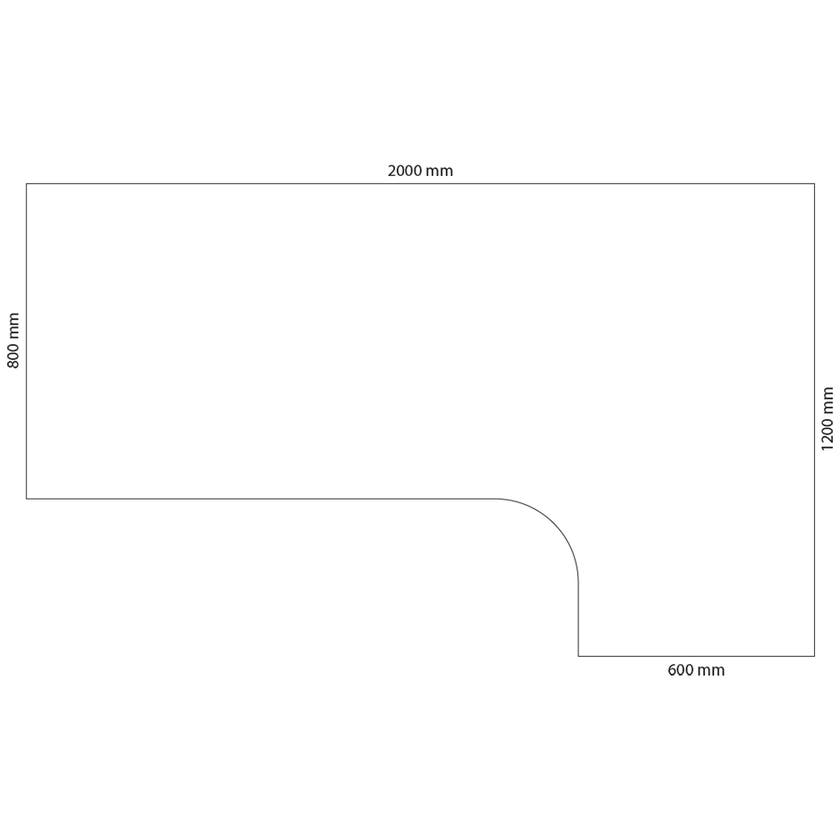 Höj- och sänkbart hörnskrivbord Sense Aero Höger, 100 kg, L2000xB1200/800x600 mm, H630-1290 mm, Amber Ek laminat, stativ Vit