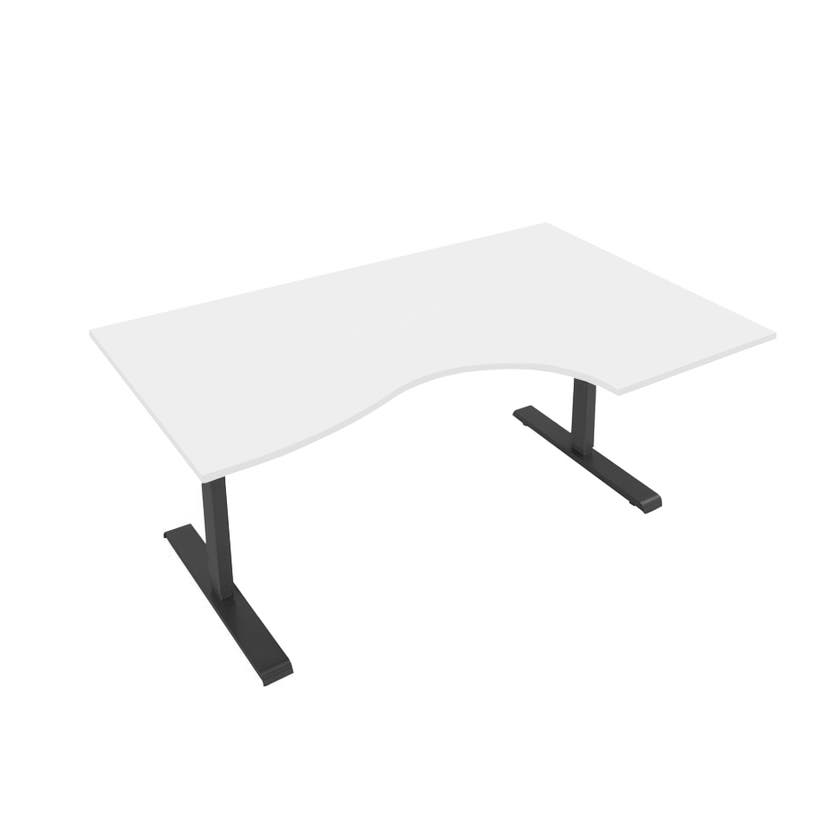 Höj- och sänkbart hörnskrivbord Sense Aero Höger, 100 kg, L1600xB1200/800x600 mm, H630-1290 mm, Vit laminat, stativ Svart