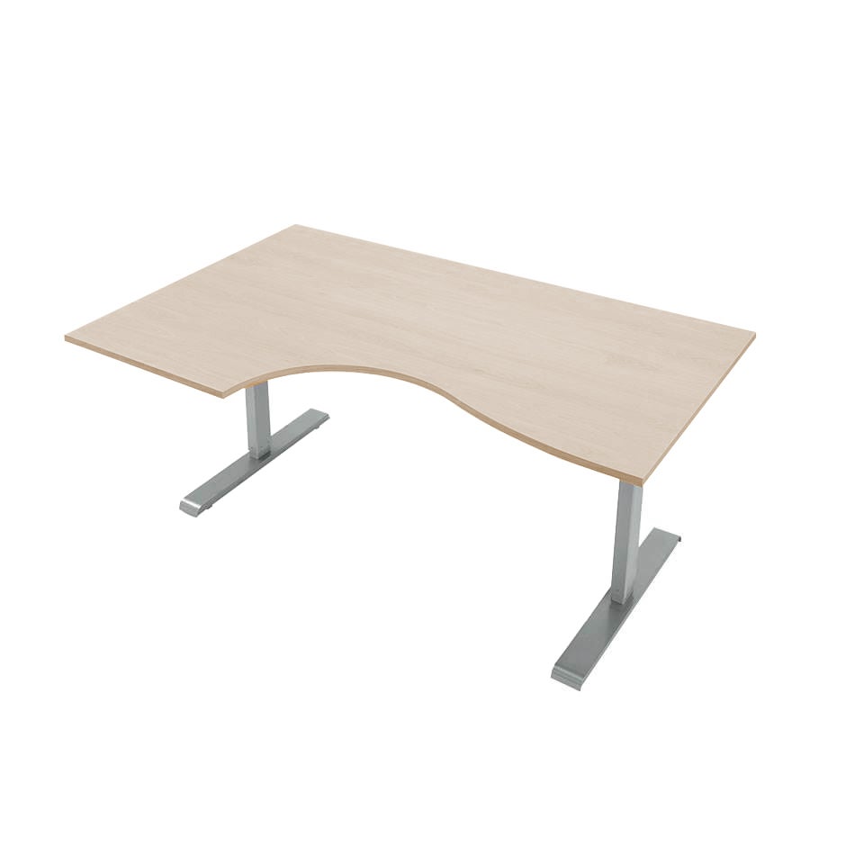Höj- och sänkbart hörnskrivbord Sense Aero Vänster, max 100 kg, L1600xB1200/800x600, H630-1290 mm, Vit Ek laminat, stativ Grå