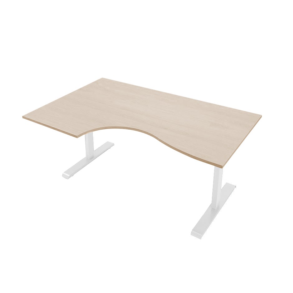 Höj- och sänkbart hörnskrivbord Sense Aero Vänster, max 100 kg, L1800xB1200/800x600, H630-1290 mm, Vit Ek laminat, stativ Vit