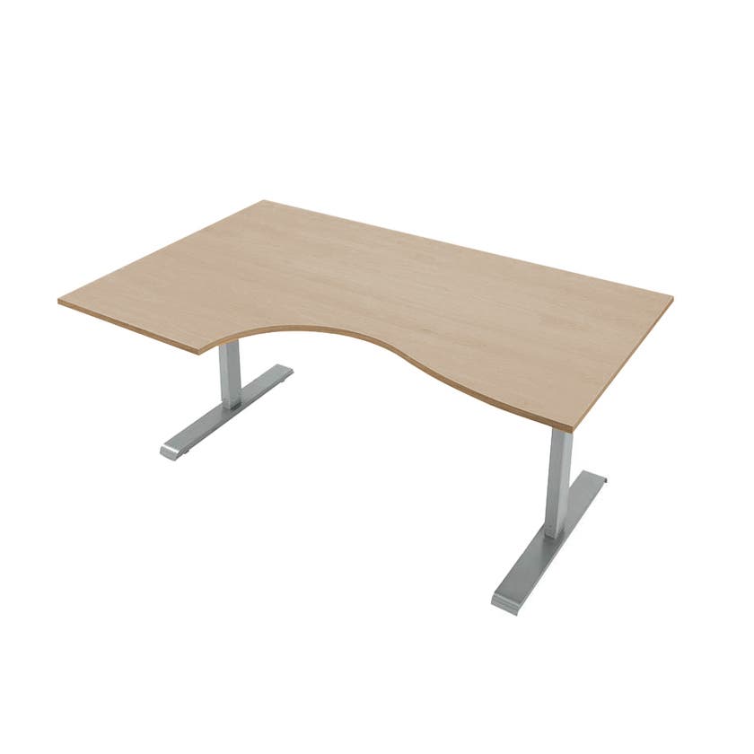 Höj- och sänkbart hörnskrivbord Sense Aero Vänster, max 100 kg, L1800xB1200/800x600, H630-1290 mm, Amber Ek laminat, stativ Grå