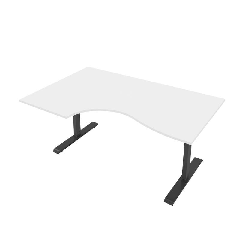 Höj- och sänkbart hörnskrivbord Sense Aero Vänster, max 100 kg, L2000xB1200/800x600, H630-1290 mm, Vit laminat, stativ Svart