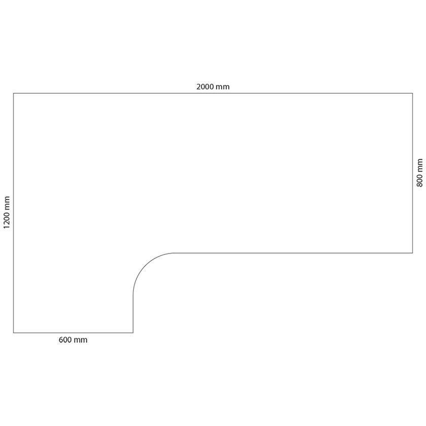 Höj- och sänkbart hörnskrivbord Sense Aero Vänster, max 100 kg, L2000xB1200/800x600, H630-1290 mm, Amber Ek laminat, stativ Vit