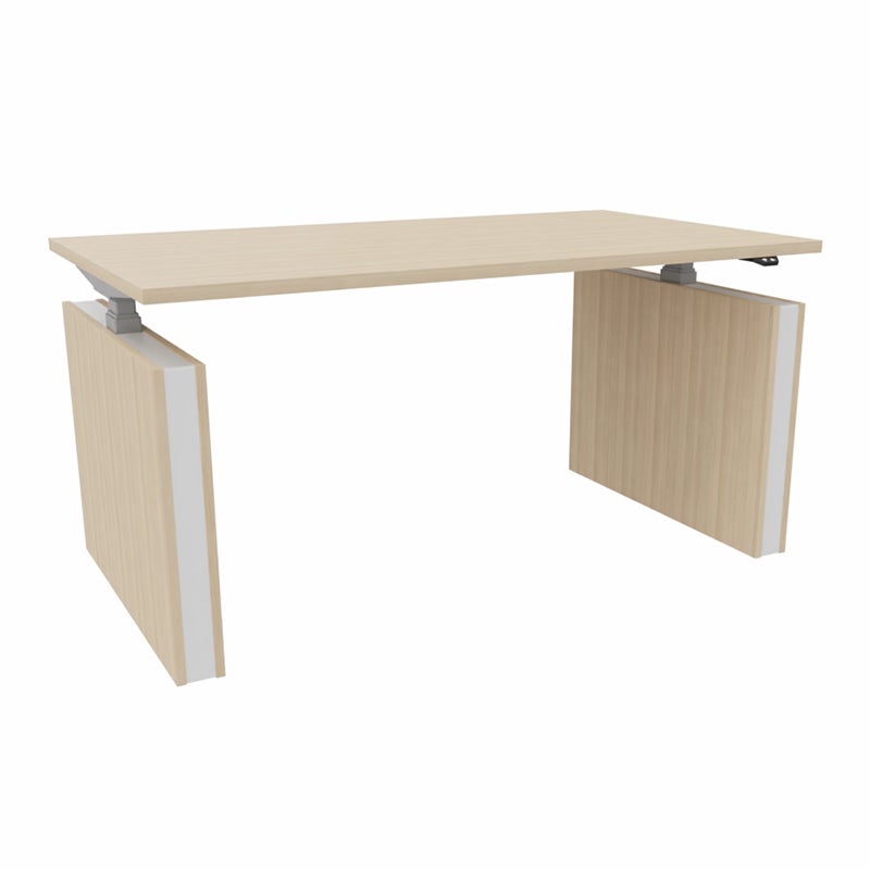 Konstruktionen ger bordet ordentlig stabilitet. Utrustat med sensor för klämskydd. Valbar i fem olika laminat på bordsskiva, tre olika färger på stativ och tre olika färger på inlägget i gavlarna.