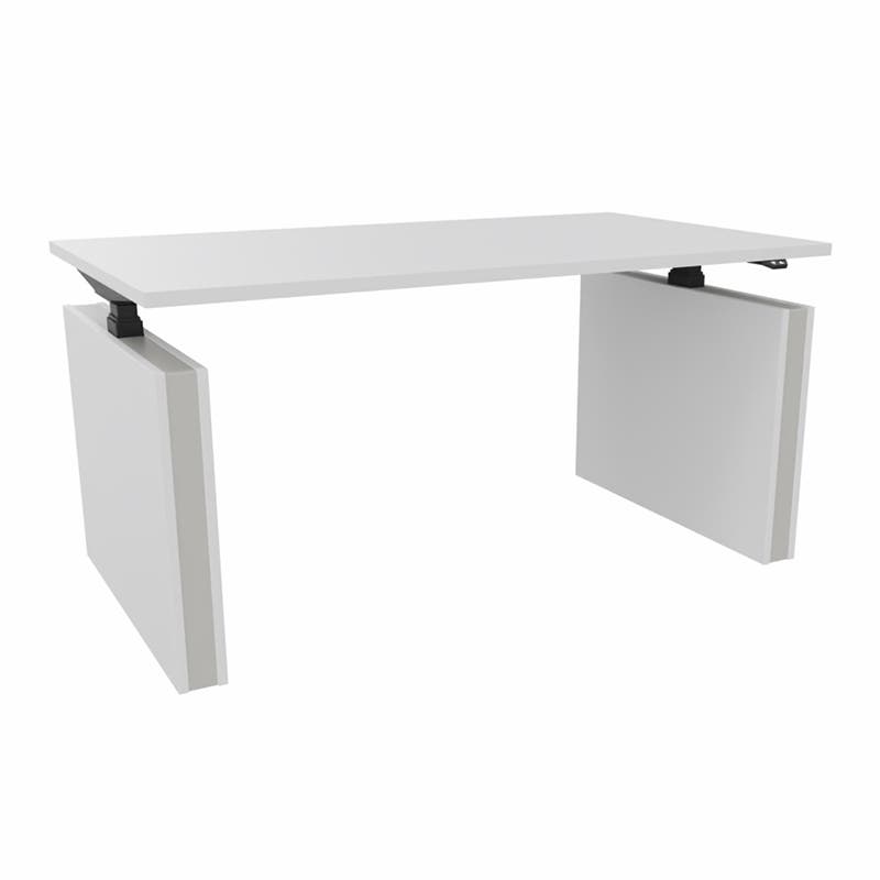 Konstruktionen ger bordet ordentlig stabilitet. Utrustat med sensor för klämskydd. Valbar i fem olika laminat på bordsskiva, tre olika färger på stativ och tre olika färger på inlägget i gavlarna.