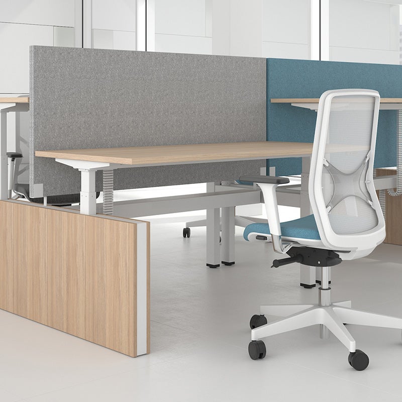 Höj- och sänkbart skrivbord Motion. 1800x800 mm, höjdintervall 650-1300 mm. Ger dig möjlighet att variera mellan sittande och stående arbetsposition.