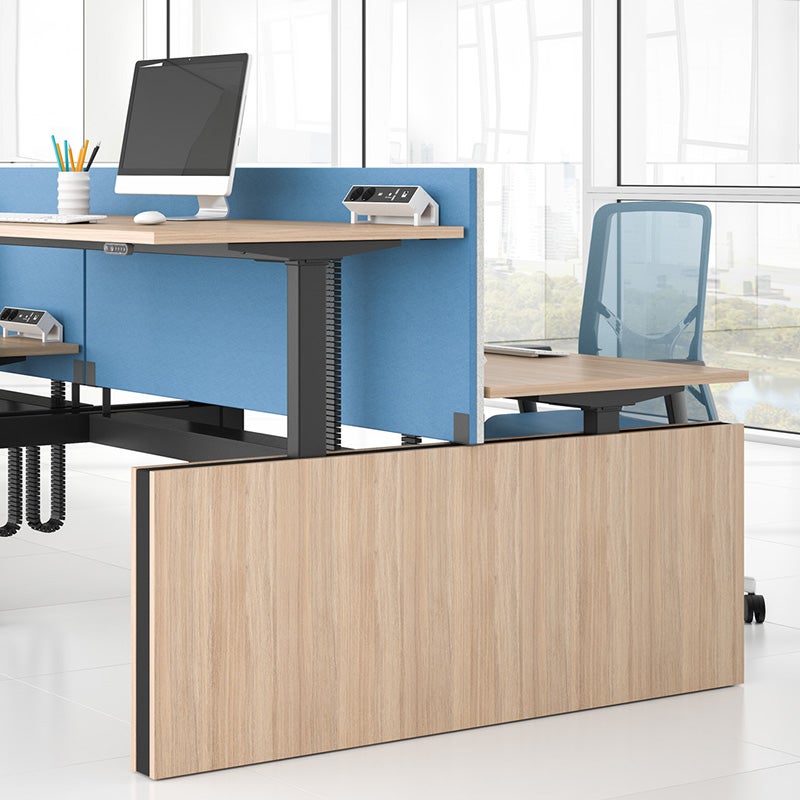 Konstruktionen ger bordet ordentlig stabilitet. Utrustat med sensor för klämskydd. Valbar i fem olika laminat på bordsskiva, tre olika färger på stativ och tre olika färger på inlägget i gavlarna.