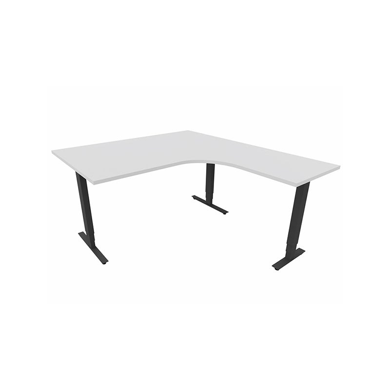 Höj- och sänkbart skrivbord Sense Aero Höger 3-ben, max 100 kg, 1400x1600, H630-1290 mm, Vit laminat, stativ Svart