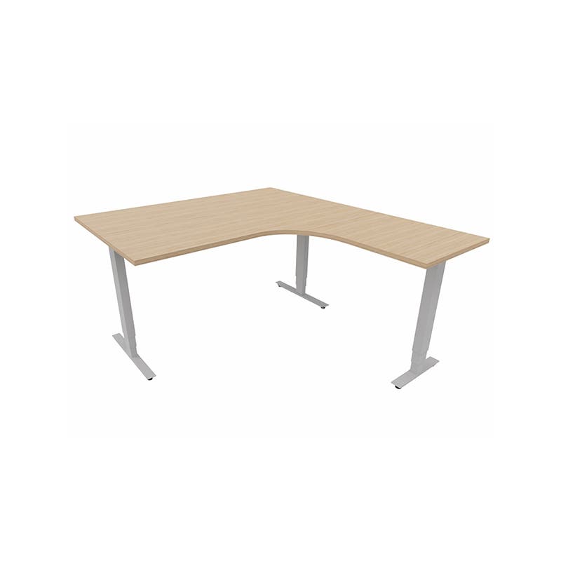 Höj- och sänkbart skrivbord Sense Aero Höger 3-ben, max 100 kg, 1400x1600, H630-1290 mm, Amber Ek laminat, stativ Grå