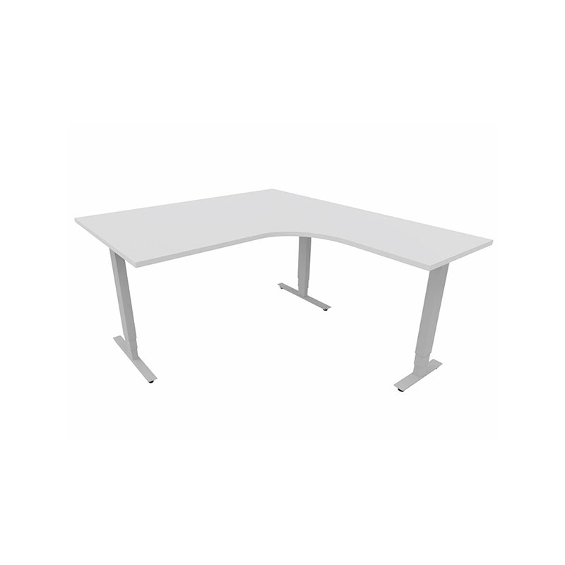 Höj- och sänkbart skrivbord Sense Aero Höger 3-ben, max 100 kg, 1400x1600, H630-1290 mm, Vit laminat, stativ Grå