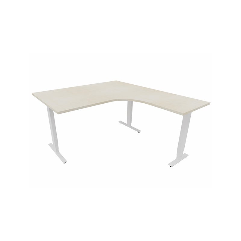 Höj- och sänkbart skrivbord Sense Aero Höger 3-ben, max 100 kg, 1400x1600, H630-1290 mm, Björk laminat, stativ Vit