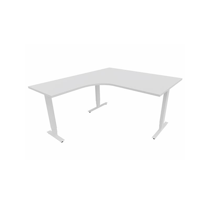 Höj- och sänkbart skrivbord Sense Aero Vänster 3-ben, max 100 kg, 1400x1600, H630-1290 mm, Vit laminat, stativ Vit