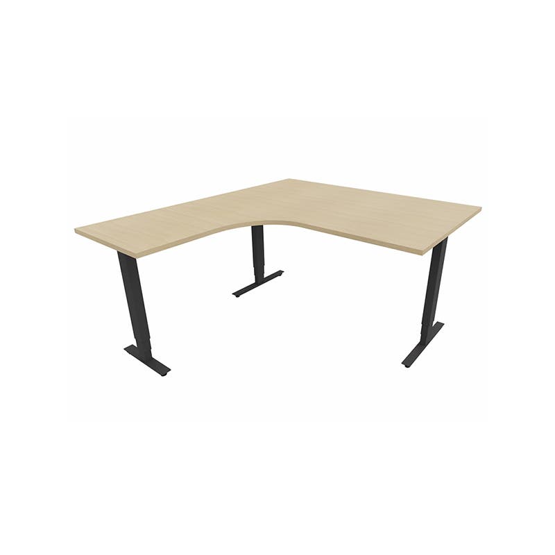 Höj- och sänkbart skrivbord Sense Aero Vänster 3-ben, max 100 kg, 1400x1600, H630-1290 mm, Vit Ek laminat, stativ Svart