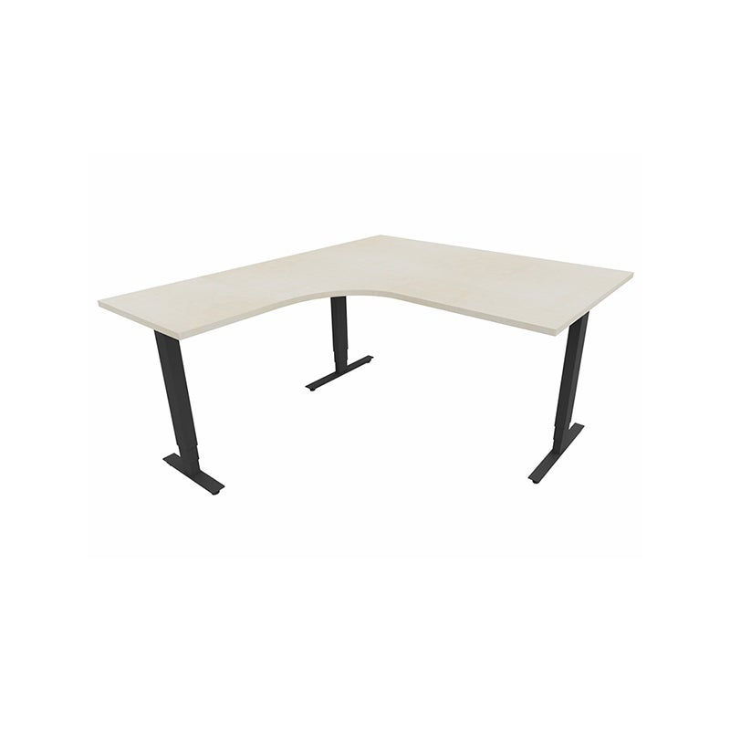 Höj- och sänkbart skrivbord Sense Aero Vänster 3-ben, max 100 kg, 1400x1600, H630-1290 mm, Björk laminat, stativ Svart