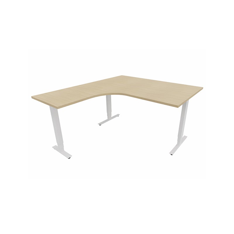 Höj- och sänkbart skrivbord Sense Aero Vänster 3-ben, max 100 kg, 1400x1600, H630-1290 mm, Vit Ek laminat, stativ Vit