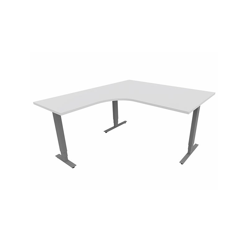 Höj- och sänkbart skrivbord Sense Aero Vänster 3-ben, max 100 kg, 1400x1600, H630-1290 mm, Vit laminat, stativ Mörkgrå