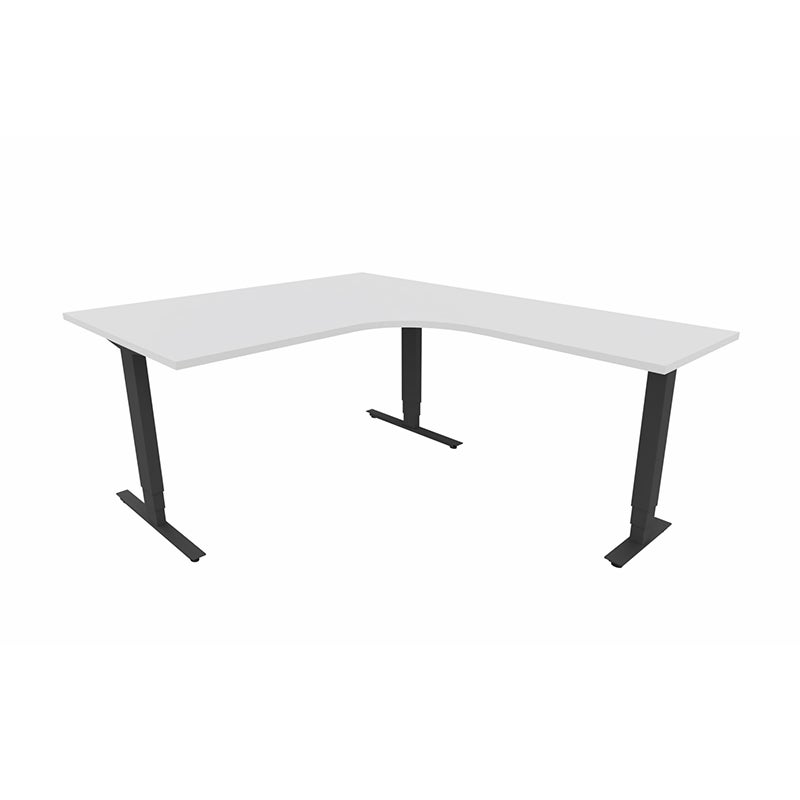 Höj- och sänkbart skrivbord Sense Aero Höger 3-ben, max 100 kg, 1400x1800, H630-1290 mm, Vit laminat, stativ Svart
