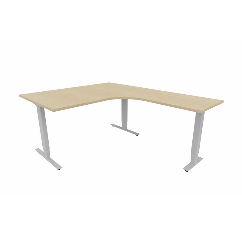 Höj- och sänkbart skrivbord Sense Aero Höger 3-ben, max 100 kg, 1400x1800, H630-1290 mm, Vit Ek laminat, stativ Grå