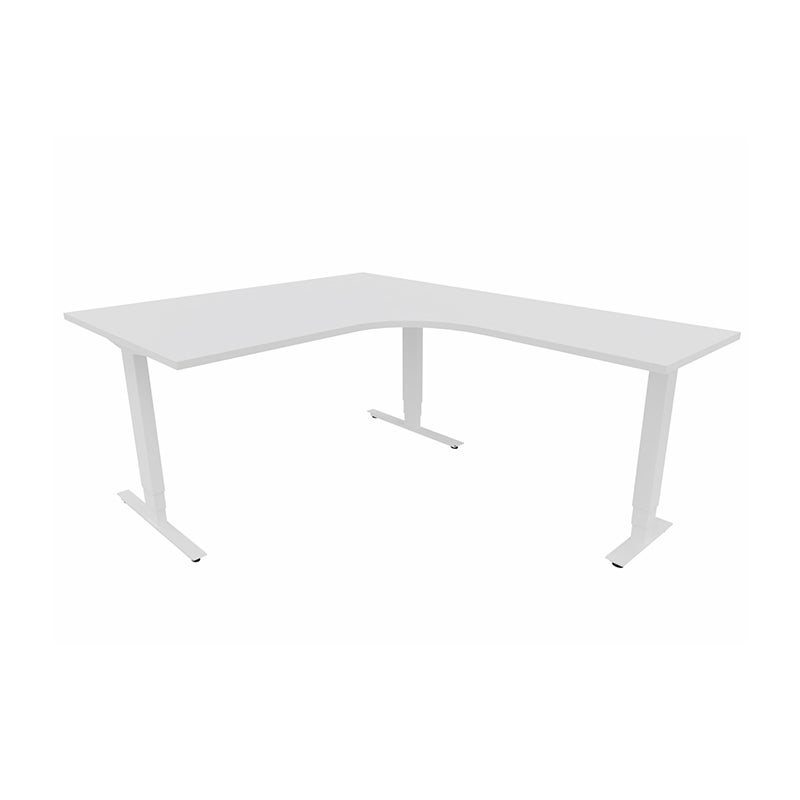 Höj- och sänkbart skrivbord Sense Aero Höger 3-ben, max 100 kg, 1400x1800, H630-1290 mm, Vit laminat, stativ Vit