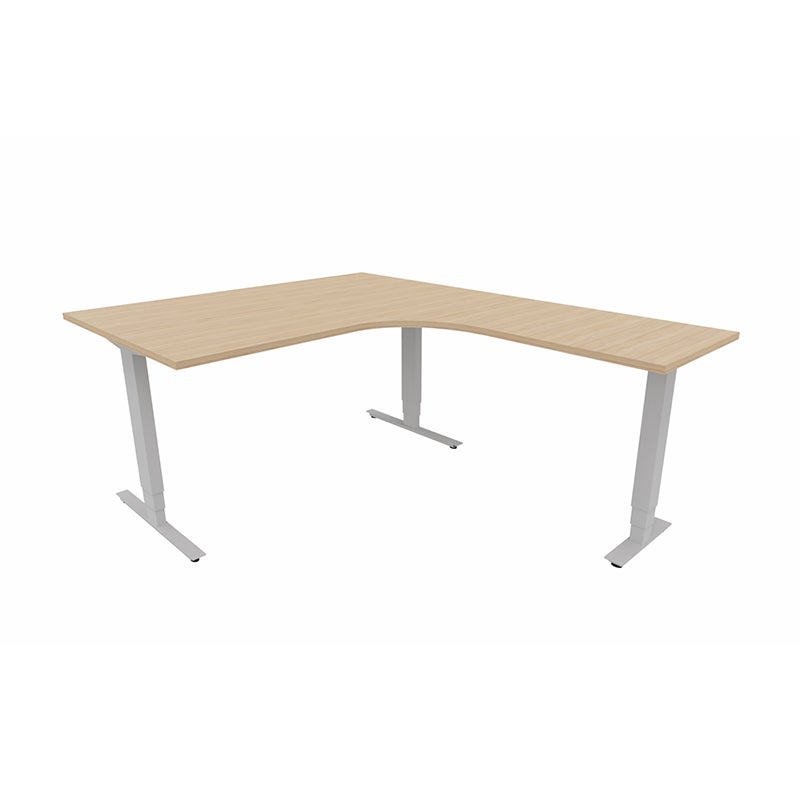 Höj- och sänkbart skrivbord Sense Aero Höger 3-ben, max 100 kg, 1400x1800, H630-1290 mm, Amber Ek laminat, stativ Grå